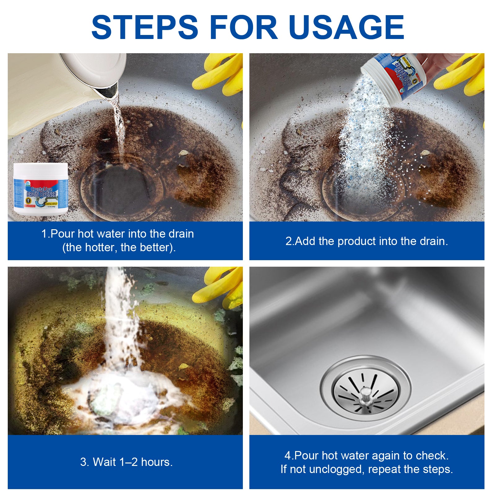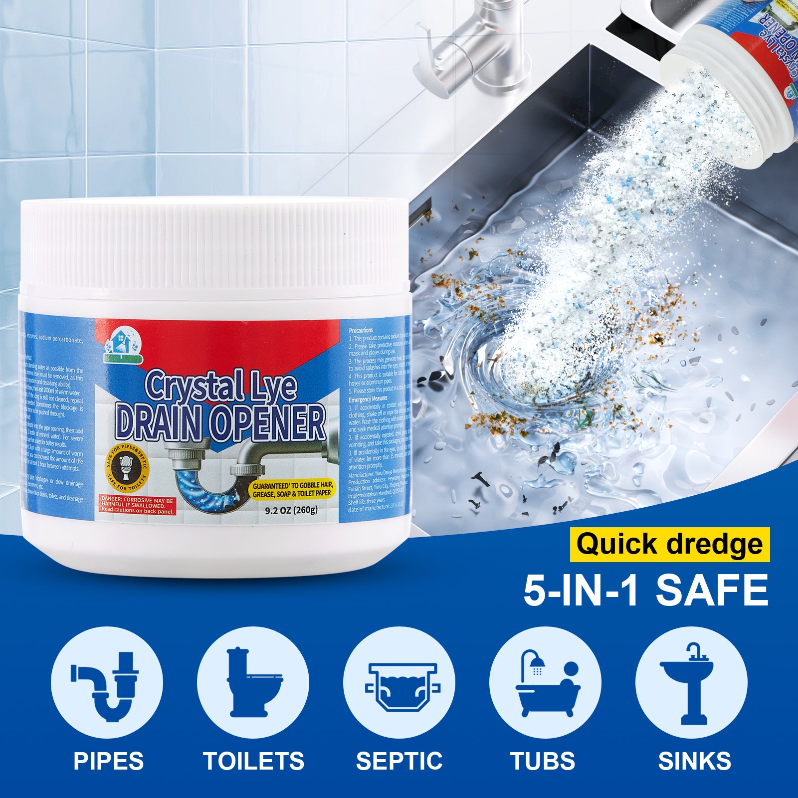 Powerful Cleaning Performance: Effectively dissolves hair, grease, food waste, and soap residue to clear stubborn clogs.