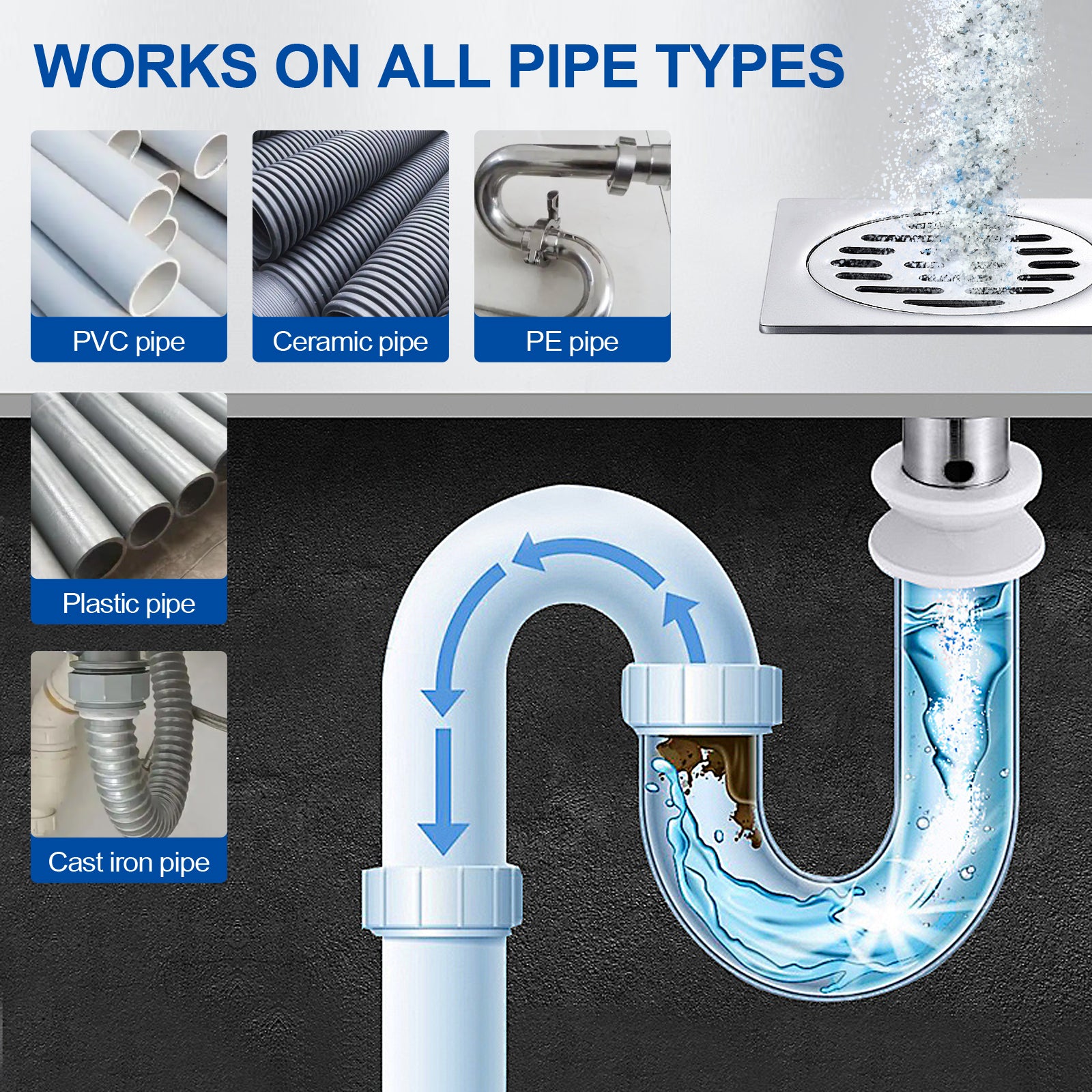 Pipe-Safe Formula: Compatible with PVC, metal, and plastic pipes without causing corrosion or damage.