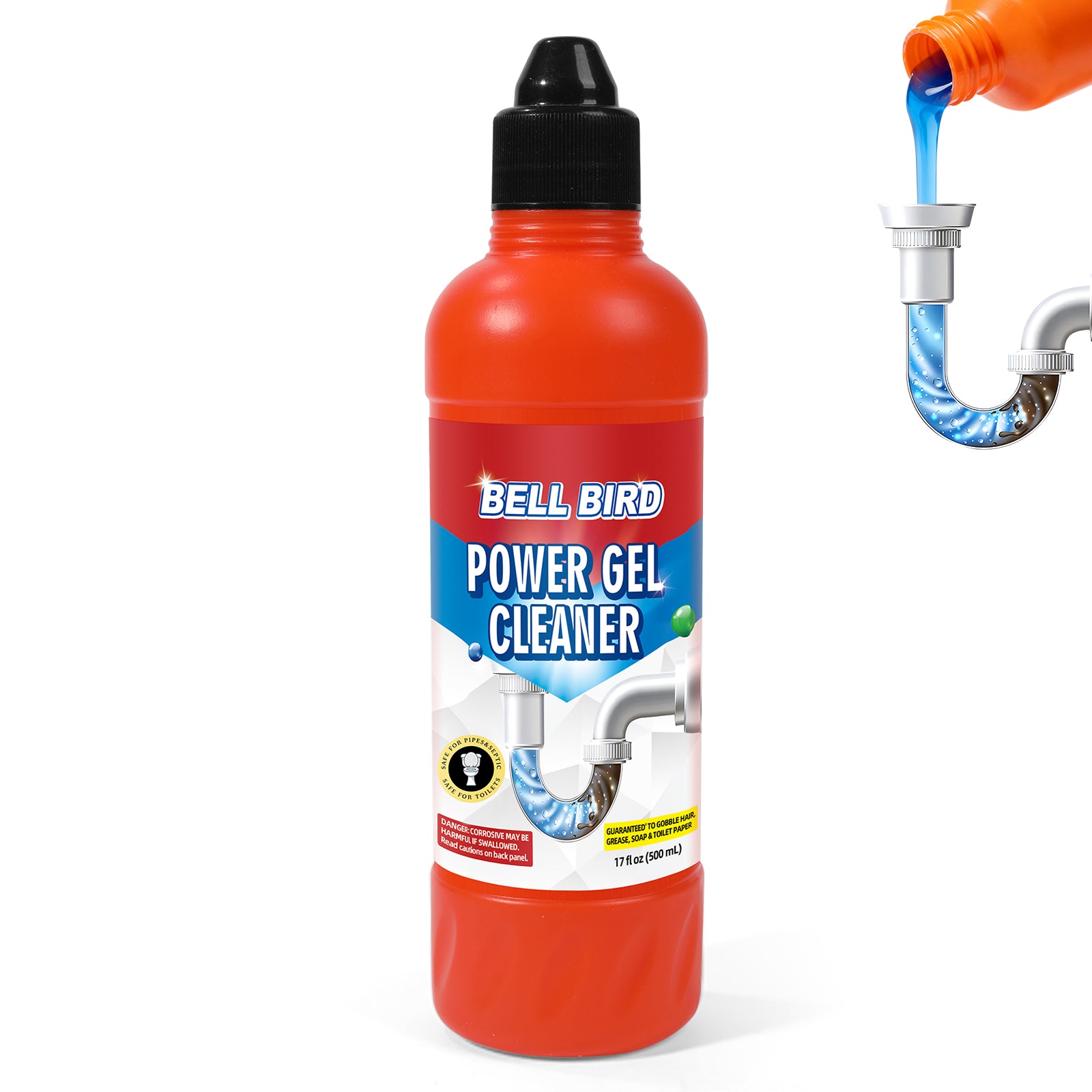 Bell Bird Power Gel Drain Cleaner | Cuts Through Standing Water to Dissolve Hair, Grease, Soap Scum & Toilet Paper | Safe for Septic Systems, Pipes & Garbage Disposals